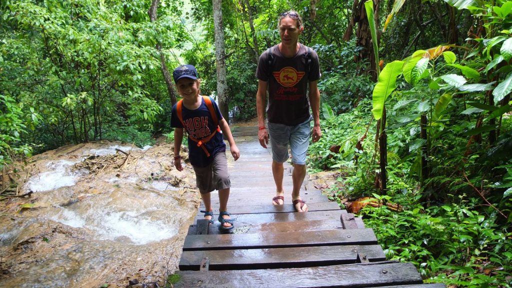 Nous avons vu environ une dizaine d’ours ce jour là ! Lonely est le Lonely Planet qui est notre guide pour le Laos. Ici, nous voyons toujours le soleil après la pluie, et l’atmosphère reste chaude ce qui fait toute la différence avec la Bretagne ! L’eau des cascades était plutôt froide mais sûrement beaucoup plus chaude que la Manche, simplement vu la chaleur extérieure c’est toujours un choc thermique et l’on a une impression de froid !